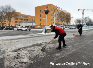 在支部書記張龍的帶領(lǐng)下,同志們冒著雪后嚴(yán)寒,掃帚鐵鍬齊上陣,分別在主干道、交通路口及辦公樓區(qū)域開展清掃積雪活動。由于車輛碾壓,雪已凝結(jié)成冰,清理較為困難,但這些卻絲毫沒有影響大家的熱情和效率,大家齊心協(xié)力,分工合作,鏟的鏟,掃的掃,終于將道路的積雪和冰清掃干凈,同志們火紅的志愿服與皚皚白雪相互映襯,形成一道獨特亮麗的風(fēng)景。熱情驅(qū)寒意,行動暖人心,通暢的道路帶給大家的不僅是方便和安全,更傳遞了一份溫暖和正能量。